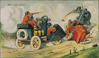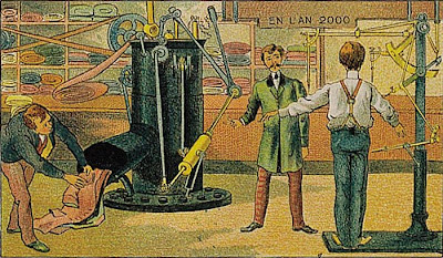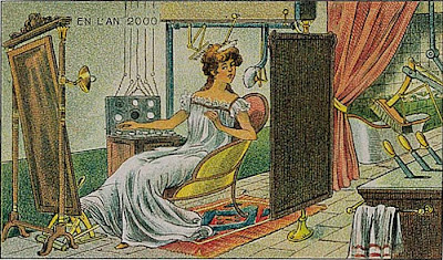В 1910 году французский художник Villemand выпустил серию иллюстраций, изображающие какими может стать жизнь в 2000 году. Мне очень понравилась картинка на которой я узнаю Skype и МакАвто =).