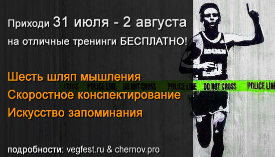 Приглашаю посетить отличные тренинги в рамках фестиваля ВЕГФЕСТ. Бесплатное участие по предварительной регистрации. Наличие билета на сам Вегфест – обязательно.