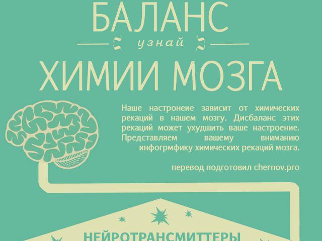 Наше настронеие зависит от химических рекаций в нашем мозгу. Дисбаланс этих рекаций может ухудшить ваше настроение. Представляем вашему вниманию инфогрмфику химических рекаций мозга.