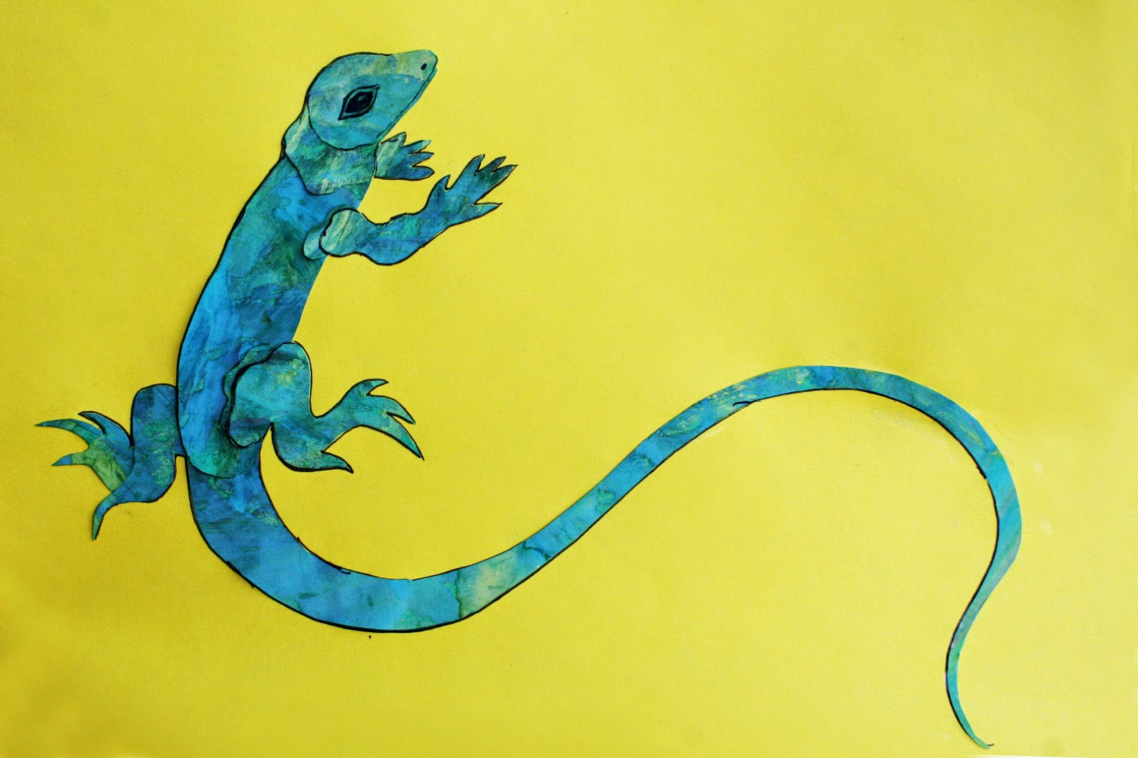 А вот такую ящерку мы сделали, вдохновившись иллюстрациями. Добрыня раскрасил бумагу, из которой я потом вырезала детали аппликации. Книга полна идей, можно сделать всех животных или добавить свои варианты.