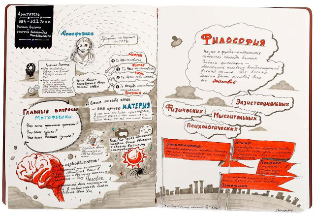 В любом случае обе книги прекрасны. Подобный подход к ведению записей позволяет не только научиться рисовать стрелочки и иконки… скорее сами записи становятся более осознанными, а информация лучше усваивается и раскладывается по своим местам. Этот подход прекрасно работает даже с лекциями по философии и квантовой физике…